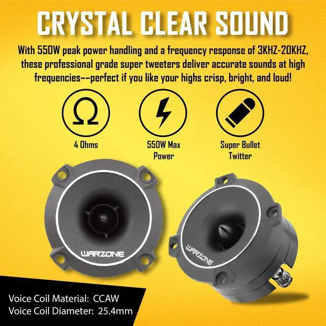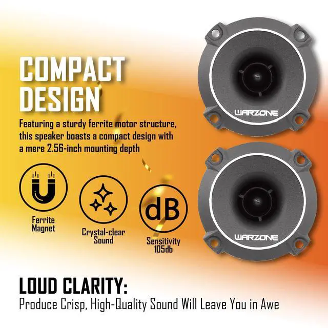 High-Performance Audio: The 2.93-inch Warzone WZ25TW tweeter delivers powerful and precise sound quality in a compact size.