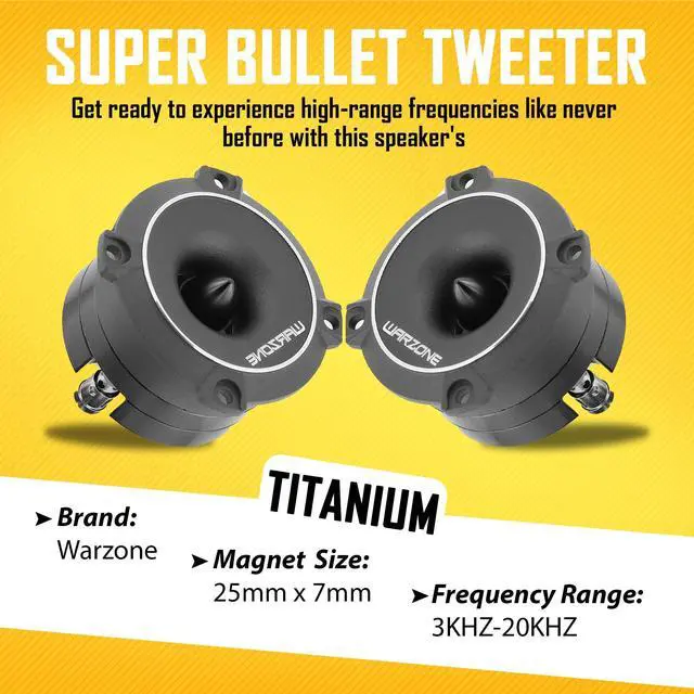 Warzone 2X WZ25TW 2.93-Inch Super Tweeter Speaker, 4 Ohm, 1100W Total Max Power, 106dB Sensitivity, Titanium Diaphragm, CCAW Voice Coil for Pro Car Audio (Pair)