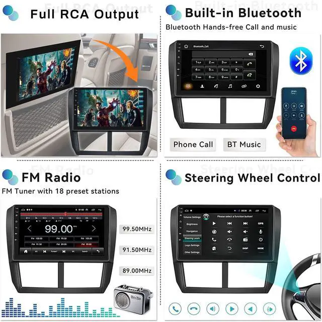 Screen: Upgrade touch screen radio for Subaru Forester Impreza WRX 2008-2012 features more functions: supports FM radio with 18 preset stations Supports split screen displaying two application Support steering wheel control function