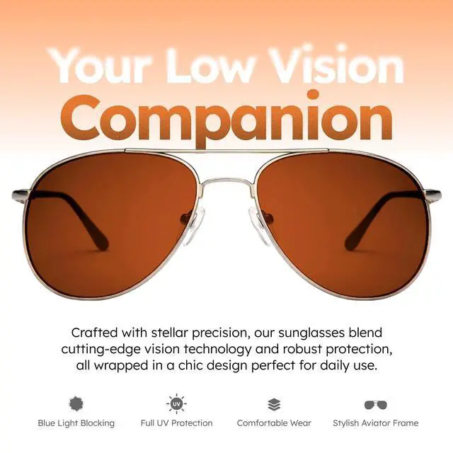 NoIR Low Vision Sunglasses, Lightweight Glasses with Full UV Protection and Blue Blocker for Light Sensitivity, Retinitis Pigmentosa and Corneal Pathology, 07_57
