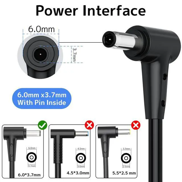 Connector Type: 6.0 mm X 3.7 mm Round Tip with central pin inside. (Do not use laptops requiring more than 240W) 2. Compatible with