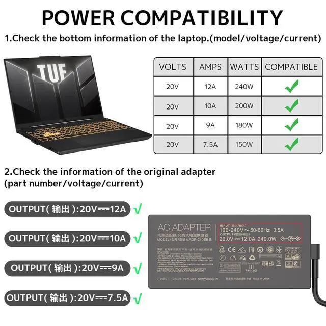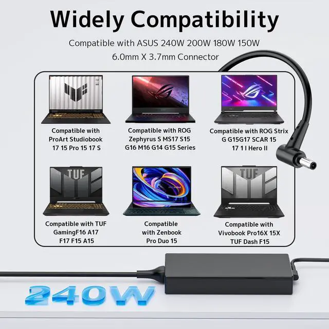 Asus ROG Zephyrus S Series: ROG Zephyrus GX735 GX735GW GX735GV GX735GX GX735GXR GX735GWR GX735GVR; Zephyrus Duo 15 GX550 GX550LWS GX550LXS; Zephyrus S15 GX502 GX502LWS GX502LXS GX502L; Zephyrus S17 GX701 GX701LV GX701LXS GX701LWS GX735LXS GX735LWS; Zephyrus M16 (2023 2022 2021) GU603 GU603HM GU603HR GU603H GU603Z GU603ZM GU603ZX GU603ZE GU603ZW GU603H GU603HE Laptop Charger Replacement 4. Compatible with