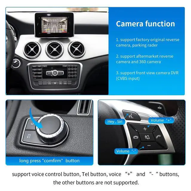 Original Car Knob Control: For the steering wheel control buttons, the CarPlay interface decoder box support voice control button, Tel button, voice buttons, the other buttons are not supported ^^