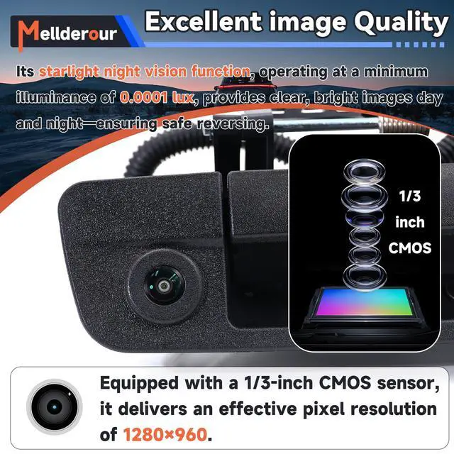 Excellent image Quality: Equipped with a 1/3-inch CMOS sensor, it delivers an effective pixel resolution of 1280960. Its starlight night vision function, operating at a minimum illuminance of 0.0001 lux, provides clear, bright images day and nightensuring safe reversing.