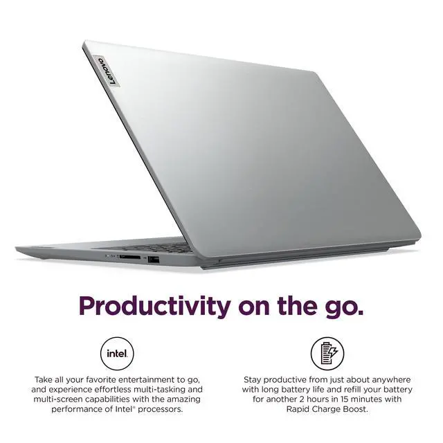 SMART DAILY COMPANION - The IdeaPad 1i is the ideal laptop for everyday use, combining functionality and convenience. Enjoy vibrant visuals on its 15.6" display with a razor-thin bezel, enhanced by rich, clear audio from dual Dolby Audio speakers. Stay productive anywhere with an all-day battery that charges quickly, while Smart Noise Cancelling ensures crisp video calls. Plus, it includes a 1-year Office 365 Personal. ^^ POWERFUL PERFORMANCE - Powered by an Intel Celeron N4500 processor with 2-cores for superior efficiency and speed, 12GB DDR4 RAM for seamless multitasking, and a 512GB PCIe NVMe M.