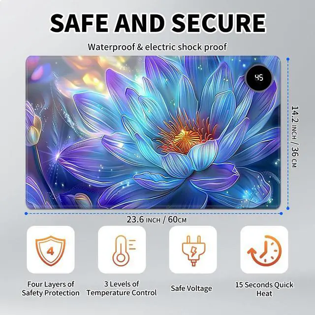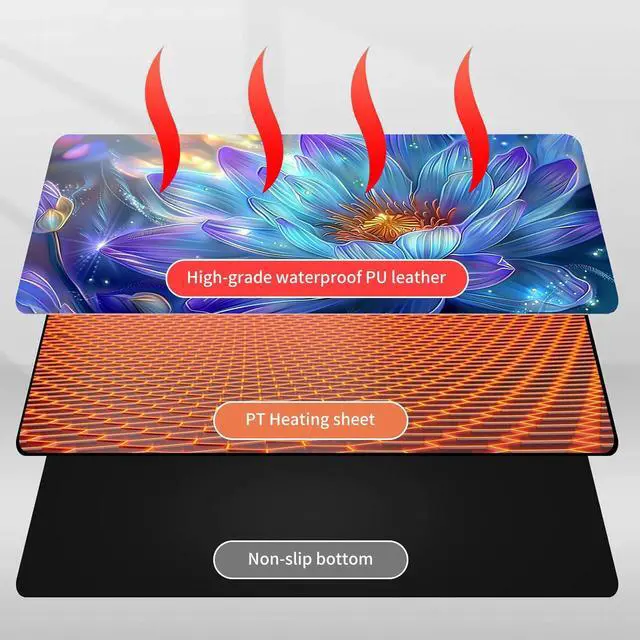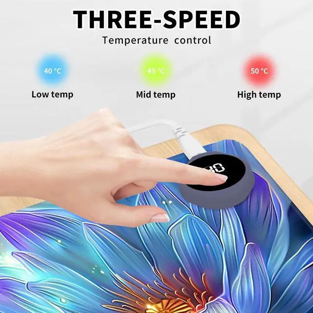 DayMulti-Functional: This warmer mouse pad also can be used as a gaming mouse mat, table warm pad, foot warmer pad, pet warmer pad. It will give you many surprises about its usage. It can keep you warmer through the cold winter. Keep warm anytime and anywhereThe heated desk mat has three temperature settings(40C, 45C, or 50C) and digital display, allowing you to customize the heat level according to your preference. The double-layer heating sheet of mouse pad enables rapid heating, just 15 seconds, you can feel significant heat. Uniform and stable heating can make your body warm anytime, anywhere in the winter.