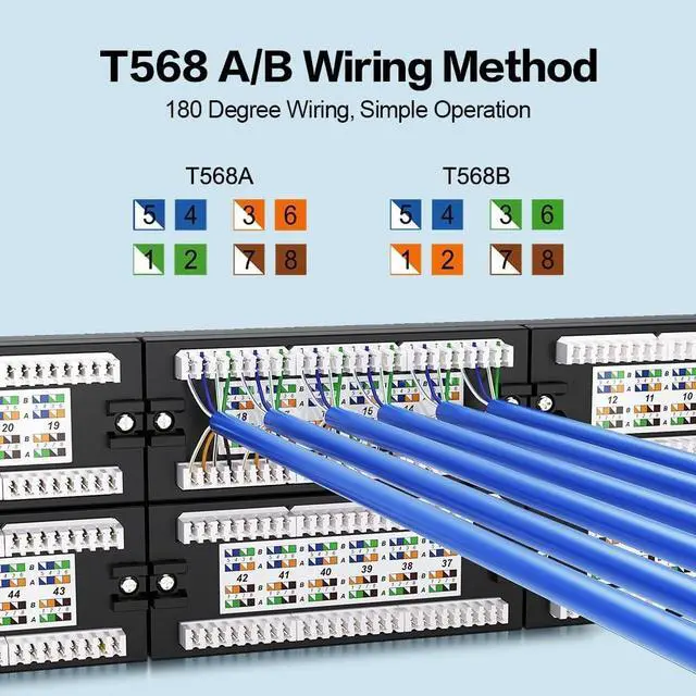 Enmane CAT6A 48 port patch panel can be mounted on the wall, the wall mount patch panel comes with mounting screws. ^^ 48port Numbered ports and color-coded T568A and T568B wiring diagram give quick reference. Gold plated contacts ensure a correction free connection. ^^ The 19 inch 48 port keystone patch panel supports 22 to 26 AWG stranded and solid wire. For use with unshielded twisted pair (UTP) Cat6A/Cat 6/Cat5e /cat5 network cables. ^^ Enmane keystone patch panel enables quick, easy cable patching. Just plug Cat6A cables into its 48 front RJ45 ports, and use a 110 or Krone punch-down tool to terminate color-coded connections in the rear.