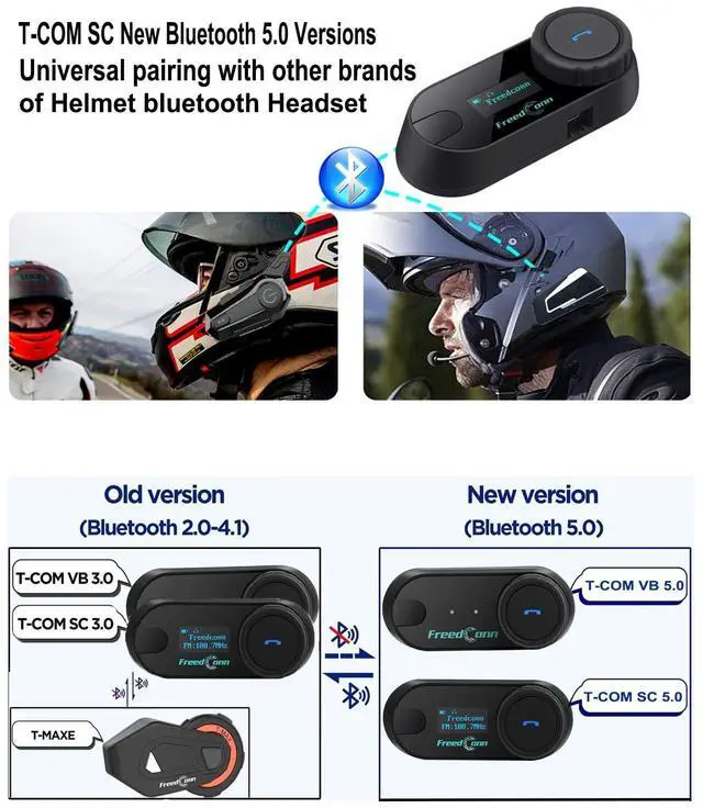 NOTE: You and partner can listen to the same music from one smartphone through intercom function, but only work between 2 Bluetooth 5.0 version TCOM SC/VB bluetooth for motorcycle helmets. ^^ LCD Screen & Long Standby Time It is an upgraded version of TCOM VB Motorbike Helmet Bluetooth, with LCD Screen, you can easily check FM frequency, connection status and battery level, perfect for intercom beginner and FM enthusiast. The Tcom SC wireless headphones supports up to 10 hours of phone talk time, 7 hours of intercom time and 300 hours of standby time, which can meet the needs of long-time riding communication. ^^ Audio Multitasking Technology & Hands-FreeThe helmet interphones allows you to listen to music, FM radio, GPS voice prompts while riding. It can realize free switching of phone calls, intercom, music and etc.; Hands-free function makes your riding more focused and safe. And it also supports voice dialing, automatically answering calls while riding, solving the pain points of highway parking (NOTE: The automatic answering call function can be turned off. ). ^^ Simple Operation & Fits All Types of HelmetsThe Freedconn tcom-sc bt 5.0 with simple "one-button" control via wireless Bluetooth system, easy to switch various functions, like control play/pause music, reject or answer calls, even with gloves on; Comes with 2-in-1 replaceable hard microphone and Soft microphone speaker, suitable for any type of helmet. Choose hard mic Bluetooth headset for 3/4 helmet/ half helmet, and soft mic Bluetooth headset for full helmet.