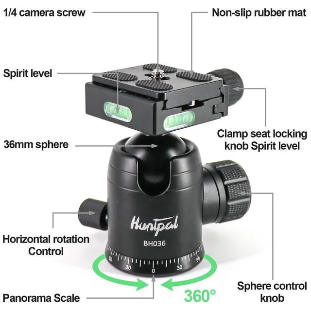 PRECISION ADJUSTMENT AND PANORAMIC DESIGN: The HPBK36 tripod ball head is designed with a 360-degree panorama feature and a finely laser-engraved scale that is incremented in 5 intervals, allowing for quick and accurate adjustments for rifle shooting ^^