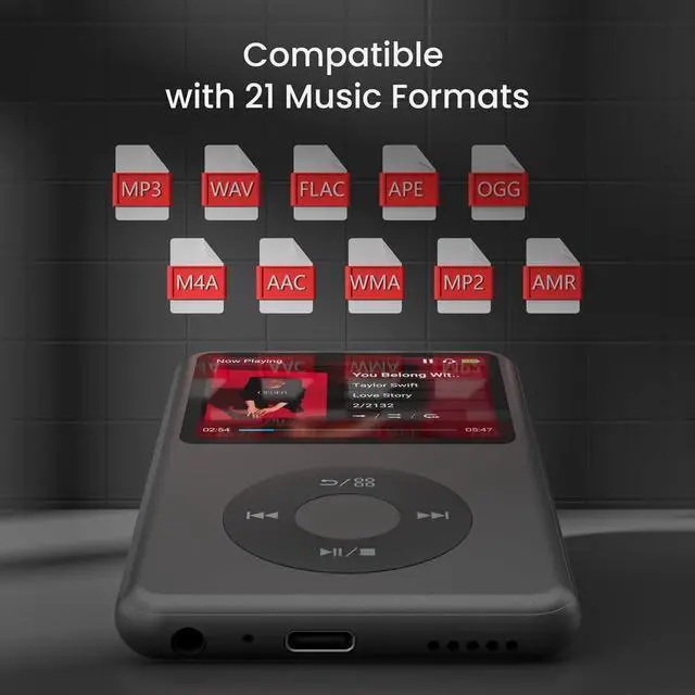 Long battery life - half volume via wired earbuds for 25 hours music playback, 1250 mAh capacity balancing excellent convenice and function. ^^ Portable mp3 player - MP3 has 64 gram( 2.26 oz) equivalent to 8 dollar coins, shap as a pock card. ^^ Formats supported - MP3, OGG, MAV, FLAC, AMR, MID, AAC, APE, etc. Compatible with ROCKBOX system by the way, what an awesome