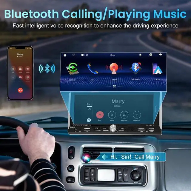 Voice Control: Upgrade 6.9" HD IPS Touchscreen Car Stereo is compatible with Apple Carplay/Android Auto for seamless smartphone integration. In addition, with voice control through Apple Siri or Google Assistant,, Enables superior voice-assisted control and easier access to phone features, access functions such as Maps, Music, GPS navigation, notification, and Calls directly in your car. In addition, Equipped with an extra microphone to ensure your voice commands are heard clearly, enhancing hands-free operation and interaction. ^^ Mirror Link and Advanced