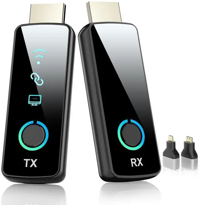 Full HD 1080P@60Hz Wireless Streaming Crystal-clear video/audio transmission up to 50m - perfect for presentations, live events, and home theaters. ^^ Zero Setup Required Factory-paired transmitter & receiver. Just connect power + HDMI to start streaming instantly. No drivers or software! ^^ Universal Device Compatibility Works with laptops, cameras, set-top boxes, projectors, TVs, and Macs. Includes mini/micro HDMI adapters. ^^ Not Recommended for Gaming Wireless transmission may cause latency - ideal for movies, slideshows, and static content only. ^^ Real-Time Signal Monitoring LED indicators show connection strength (3-bar display) and HDMI signal status.