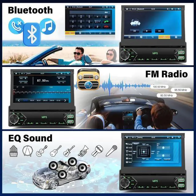 The 7 inch flip out FM car radio receiver with steering wheel control helps you drive safely, allows you to deal with calls, and hands-free for safer driving