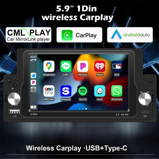 1. Wireless Apple CarPlay & Android Auto: Enjoy the convenience of wireless CarPlay and Android Auto, allowing you to control navigation, music, and calls directly from your single DIN touchscreen radio. ^^ 2. 5.8" HD IPS