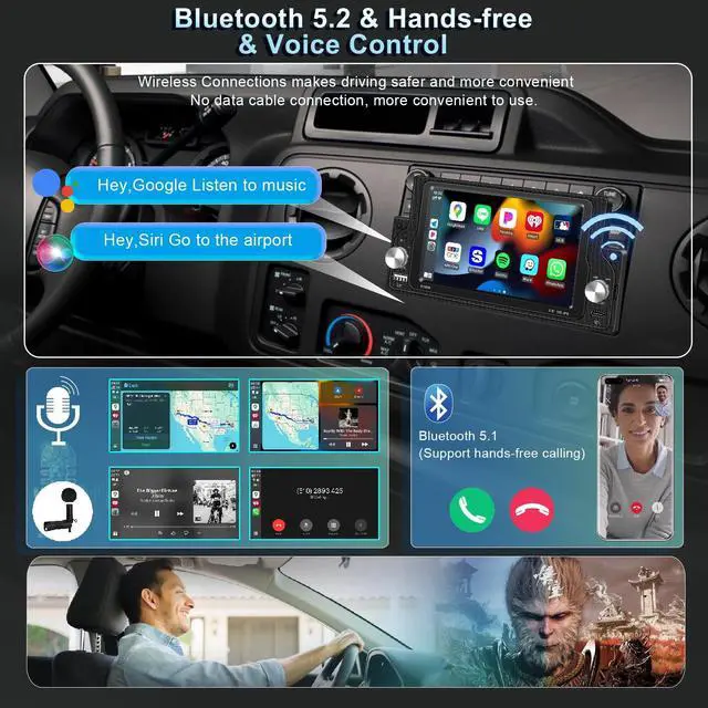 Calls & Music: With BT 5.2, connect your phone wirelessly for hands-free calling, streaming music, and accessing your contactsall via your single DIN car stereo. ^^