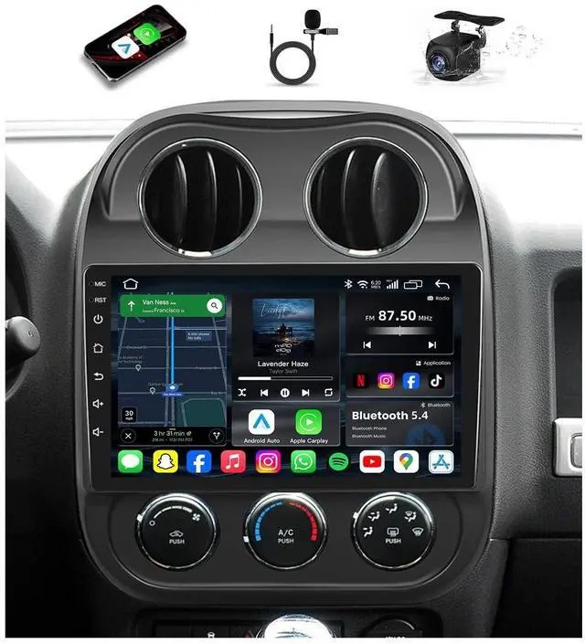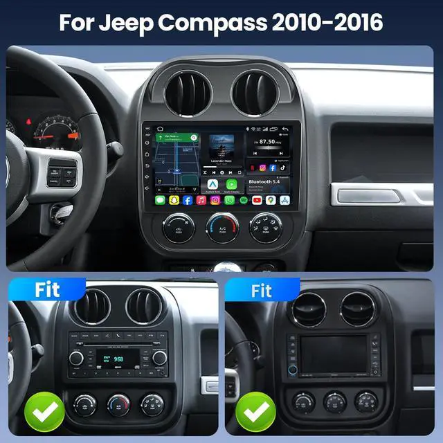 Applicable Car ModelsThe Car Radio is compatible for Jeep Compass 2010-2016, for Jeep Patriot 2009-2016. Powered by a Cortex-A53 1.8GH z CPU, with 4GB RAM and 64GB storage, it ensures smooth multitasking. The package includes all necessary wiring harnesses and dash kits for straightforward installation. If you have any inquiry, please dont hesitate to reach out to us. We will respond within 24 hours. ^^ Advanced Bluetooth 5.4 & FM RadioThe Patriot radio features cutting-edge Bluetooth 5.4 technology, offering faster speeds and improved range over Bluetooth 5.0. Enjoy seamless hands-free calls and music streaming with automatic phonebook syncing.