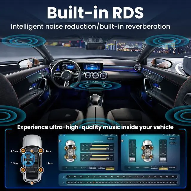 Plus, experience enhanced audio control with customizable 32EQ settings and advanced Digital Signal Processing. Tune in easily to your favorite FM/RDS stations for a complete audio experience. ^^ High-Resolution Touch ScreenEnjoy an immersive viewing experience with a 10 inch capacitive touch screen boasting a resolution of 1280x800 IPS. Benefit from vibrant colors and consistent brightness from any angle, even in direct sunlight. Swift response times guarantee smooth touch interactions, enhancing usability while driving. ^^ CarPlay & Android AutoUpgrade your driving experience with seamless wireless Apple CarPlay and Android Auto compatibility. Utilize Siri or Google Assistant for hands-free calls, music playback, navigation, and voice commands.