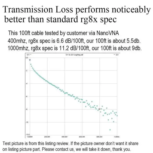 This RG8X Coaxial Cable inner conductor is 16AWG, made with 19PCS 0.3 mm Tinned Pure Copper Strands. Double shielding to prevent signal leakage, interference and signal loss. Peforms better than common 17awg conductor RG8X Cable, also more durable and stronger than average CB antenna cables ^^