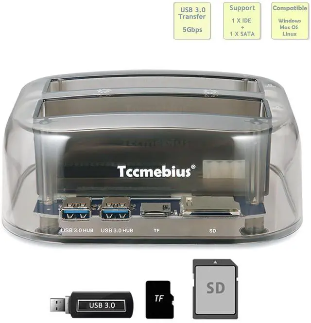 ^^ Data transfer: Easy transfer of data from your 2.5 "/ 3.5" IDE or SATA hard disk to your computer via USB 3.0 port, USB 3.0 data transfer rate up to 5 Gbps. Integrated card reader (TF card / SD card), at the same time card reader can read only one memory card, up to 64GB.