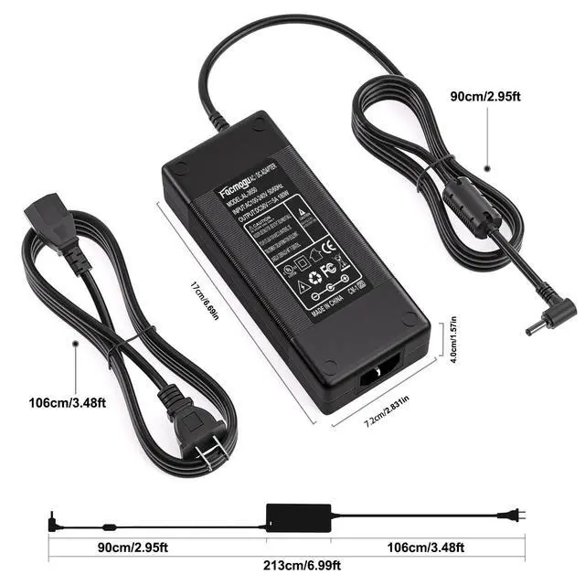 IMPORTANT NOTE-- Compatible with 36V DC equipment, please make sure that the output voltage of your electronic device is 36V and the output current is less than or equal to 5A, the rated power is within the range of 180W! This is a 5A power converter. If a product exceeding 5A is connected, which will cause not working properly. ^^ Power Specifications-- Power Supply with Input AC100-240V- 50/60Hz and