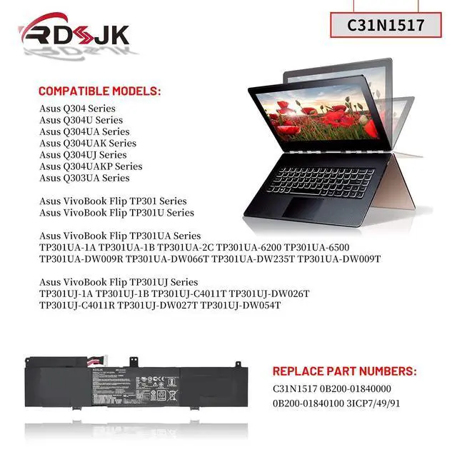 Machine Models: for Asus Q304 Seriesfor Asus Q304U Seriesfor Asus Q304UA Seriesfor Asus Q304UA 2-in-1 13.3" Seriesfor Asus Q304UAK Seriesfor Asus Q304UAKP Seriesfor Asus Q304UJ Seriesfor Asus Q303UA Seriesfor Asus VivoBook Flip TP301 Seriesfor Asus VivoBook Flip TP301U Seriesfor Asus VivoBook Flip TP301UA SeriesTP301UA-1A TP301UA-1B TP301UA-2C TP301UA-6200 TP301UA-6500TP301UA-DW009R TP301UA-DW066T TP301UA-DW235T TP301UA-DW009TTP301UA6200 TP301UA6500for Asus VivoBook Flip TP301UJ SeriesTP301UJ-1A TP301UJ-1B TP301UJ-C4011T TP301UJ-DW026TTP301UJ-C4011R TP301UJ-DW027T TP301UJ-DW054TCompatible