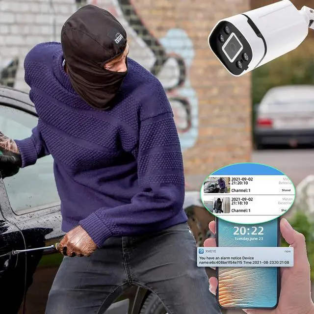 ^^ Wide View Angle & Practical Additional FunctionsEquipped with 2.8 mm wide-angle lens offering 110 ultra-wide viewing angle to cover more areas. Support H. 265+ video compression to save storage space. Features time-lapse recording, email alert, APP push, and remote access. Easy installation and stable performance, ideal for home, warehouse, shop, and outdoor surveillance.