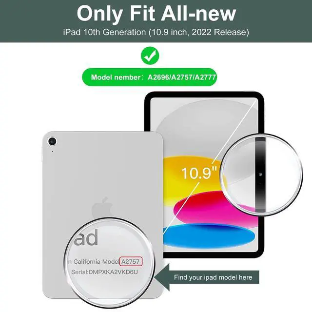 Number: A2696/A2757/A2777). It is Not compatible with any other models. Please check the model number starting with "A" on the back of your iPad before purchasing. ^^ Bluetooth Wireless Keyboard Case- Magnetic compact wireless Bluetooth Slim 6.2 mm keyboard with 10m range, easy to install and remove, can be securely attached to the case, instantly become a portable laptop. Including volume and media controls, brightness adjustment, and more. Keyboard design using scissor-cross low profile structure, enhance the tactility of typing, let you faster and easier to learn and work. Easily prop up your iPad with standing position for enjoy the most comfortable flexible angles. ^^ Quickly Become a Laptop- This ipad keyboard 11th 10th generation will easily turn your iPad into a powerful laptop. Easy to use and portable, suitable for meetings, travel or home, it is a good companion for work and study. This is a great gift option for the loved ones on your holiday gift wish list. Can be given to your familes or relatives and friends as a birthday, Christmas, Thanksgiving, Mother's Day, Father's Day gift.