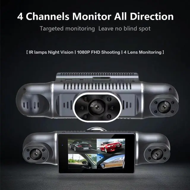 ^^ Automatic On Or OffPanoramic car recorder supports automatic ignition on and off, users can record automatically without manual operation, saving time and effort. ^^ Infrared Night Vision4 channel camera is equipped with infrared night vision function, which can clearly record the process of driving at night and ensure the safety of driving.