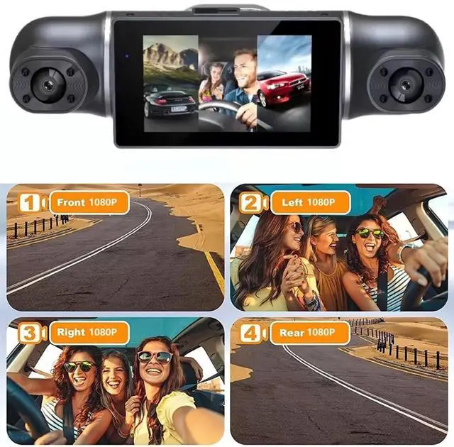 360 Degree Panoramic Video Recording4 channel camera supports front, back, left and right video recording inside and outside the car, which can record the car driving process in 360 degrees. ^^ HD Picture Quality360 degrees dash cam adopts 5MP with 1080P image resolution and is equipped with a 3 inch HD display, which allows users to clearly observe the video images in all directions. ^^ Emergency Save FunctionCar driving recorder supports g sensor technology, which can automatically save the record in case of a car accident to ensure the integrity and accuracy of the record.