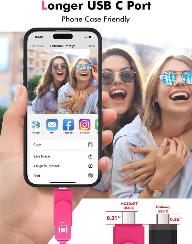 Blazing-fast data transfer: Say goodbye to long wait times! Our USB C 3.2 thumb drive boasts lightning-fast data transfer speeds up to 150MB/S, allowing you to transfer files in just seconds. ^^ No need to remove the shell: Our USB C memory stick has a longer type c port, so you don't have to remove the shell to use it. It's hassle-free and convenient. ^^
