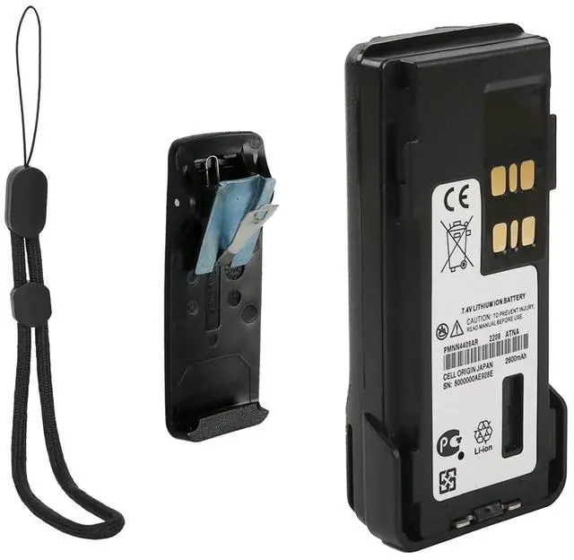 Package includes: One pieces pmnn4493a impres replacement battery, a radio lanyard and a belt clip.
