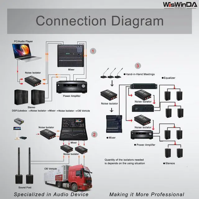Kind remind please confirm whether the product is suitable before buying. ^^ HiFi Performance for Different Purpose Situations--The Ground Loop Audio Noise Eliminator could work with amplifiers, speakers or mixers, with stable performance, high precision and good reliability. Let you eliminate car speakers / home stereo systems humming sound away and enjoy a perfect sound.