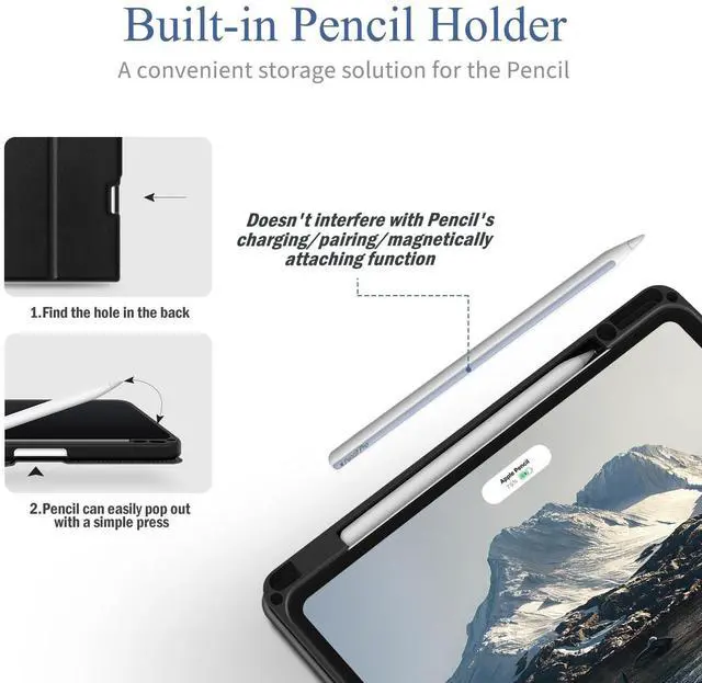 • Built-in Pencil Holder: The iPad Air 13'' case can tightly hold your pencil, supports Pencil Pro wireless charging/pairing/magnetically Attaching and Pencil (USB-C) charging/magnetically Attaching