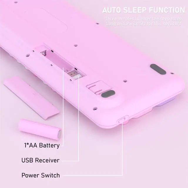 ABOUT CONNECTION: The keyboard uses 2.4GHZ wireless technology to provide a stable connection, and the working distance is 10m (33ft). If the connection is unsuccessful, please hold down FN + ~ to pair the keyboard with your device ^^