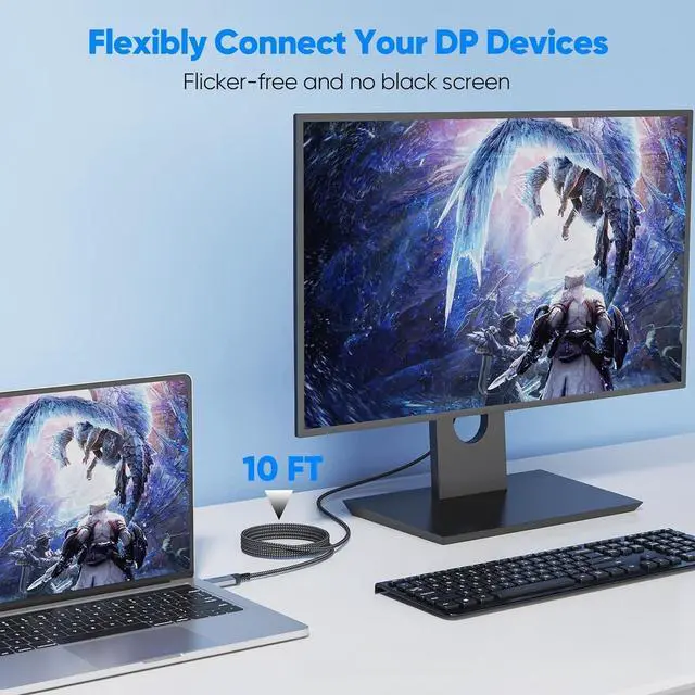 Length: Displayport cables 10ft eliminates spatial constraints, allowing flexible connection of your DP-enabled devices. It supports both mirror and extended modes, letting you connect one or more DP monitors to upgrade your workspace ^^