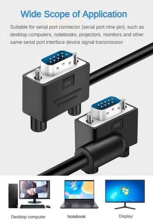 Connector Design: This DB9 serial cable features a smart left-down angled connector on one end, perfectly designed to save space and reduce strain when connecting to tight or recessed ports on computers and industrial equipment. The matching straight connector ensures universal compatibility, creating a clean, organized, and professional setup. ^^ Guaranteed Reliable