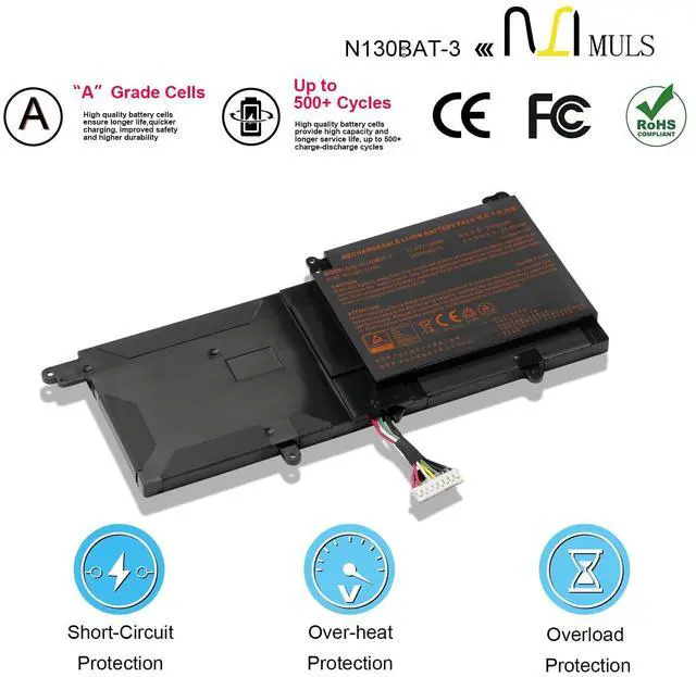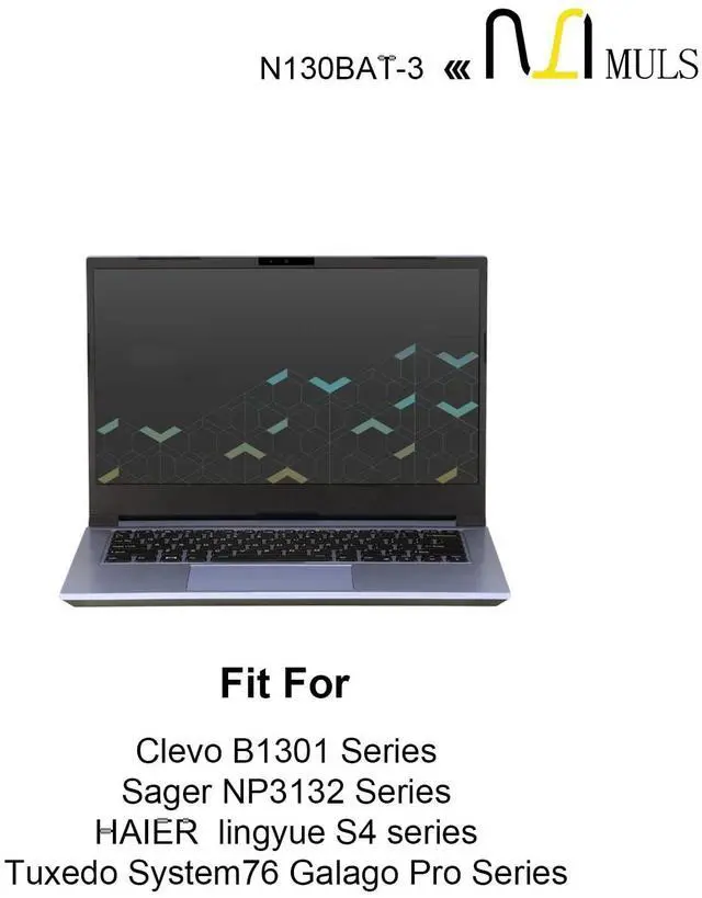 Voltage: 11.4V. 100% brand new. Up to 500 recharge cycles over the life of the battery. High-quality materials and circuit board. ^^ Replacement For LaptopFit for Clevo N130BU N130WU N131BU N131WU NP3130 Series; HAIER lingyue S4 series; Tuxedo System76 Galago Pro, Pro 2, Pro 3 Series; Tuxedo InfinityBook Pro 13 V2, Pro 13 N130BU, Pro 14 V3 Series; Sager NP3132 NP3141 NP3145 NP3146 NP3155 NP3156 Series. ^^ Compatible with Part NumberFit for 6-87-N130S-3U9 6-87-N130S-3U9A 687N130S3U9 687N130S3U9A N130BAT-3 N130BAT3. ^^ Safety Above AllOur batteries are certified by CE, FCC and RoHS to ensure your safety, and packed with prevention measures like short circuit, overheat and overcharge protection. Our laptop batteries are made with premium materials and circuit boards to ensure performance and durability. ^^ Give Customers the