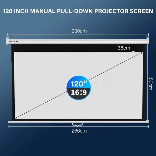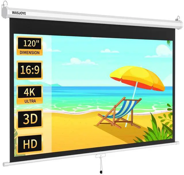 WASJOYE 120'' Projector Screen Manual Pull Down - 16:9 HD Retractable Projection Screen with Auto Locking - 4K Projector Screen Anti-Crease for Home Theater Cinema Office Education Presentation