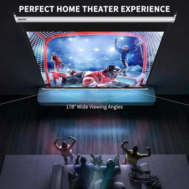 • VISUAL FEAST : The 120 in retractable projector screen unique performance ensures that each incident light is evenly reflected; up to 178 panoramic viewing angle, 16:9 1.2 high gainthe screen supports 3D, 1080P, 4K, Full HD picture quality. It is recommended to use a medium-to-long focal length projector