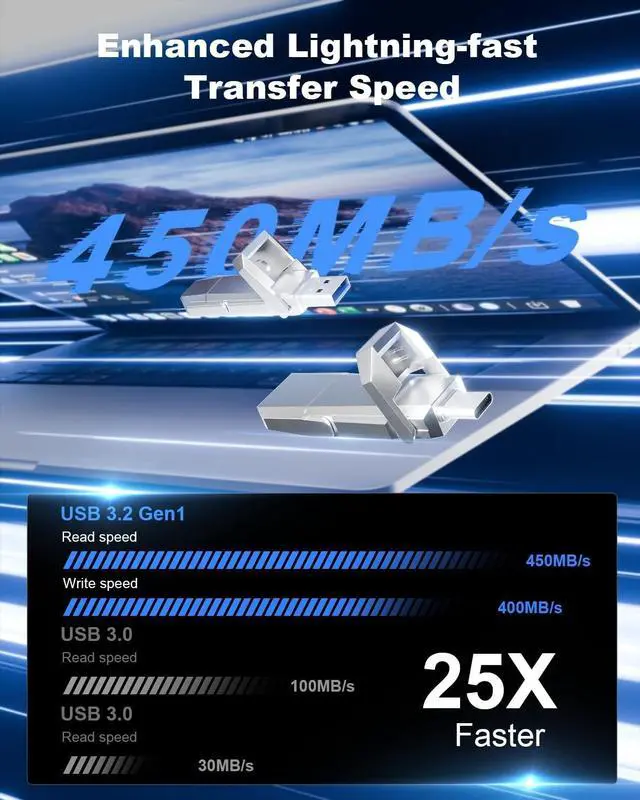 Flash Drive: Equipped with Type-C port and USB-A port, dual USB SSD drive makes it easier to transfer data between your smartphone/tablet and computer more convenient. ^^