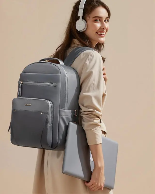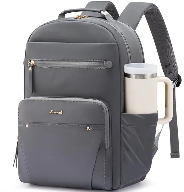 DescriptionLOVEVOOK Laptop Backpack for Women with 2X Extra-Large Tumbler Pockets, 15.6" Work Backpack Purse, Travel Personal Item Bag, Carry On Business Computer Bag for Office, School, Lustrous Graphite