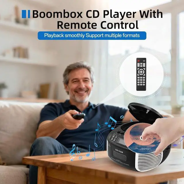 Bluetooth/USB/AUX Playback: More than just a CD player, this device provides versatile music access through Bluetooth, USB, and AUX input. Connect wirelessly via Bluetooth 5.1, use AUX for a stable wired connection, or insert a USB drive to play songs or audiobooks directly. The compact remote allows effortless control from a distance, letting you listen to your favorite tracks while doing chores or moving around your home ^^