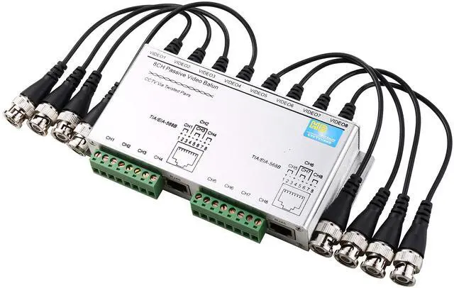 Connection method: Clamp modular plugs for a Cat-5 unshield twisted pair wire according to the connection order of TIA-EIA-568B, connect the clamped modular plugs to the RJ45 socket, connect the coax to the BNC.