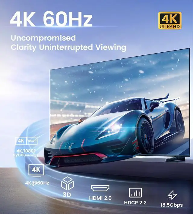 4K HDMI Splitter 1x3 - duplicates 1 HDMI input to 3 screens with stunning UHD 4K@60Hz resolution. It mirrors the exact same content on all displays and does not support extended screens. Experience lag-free, synchronized audio and video for smooth playback on TVs, monitors, and projectors.