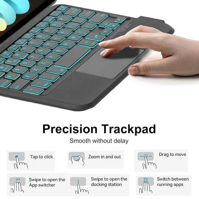 Detachable Keyboard with Multi-Touch TrackpadMagnetic keyboard easily detaches for quick switching between tablet and laptop modes. Equipped with a smart touchpad that can accurately control and navigate, realize the combination of tablet and computer functions, and enjoy an excellent notebook experience. Control your iPad mini at multi-gesture. Edit documents, browse the web, and build presentations with unparalleled speed, bringing you the convenience of high productivity