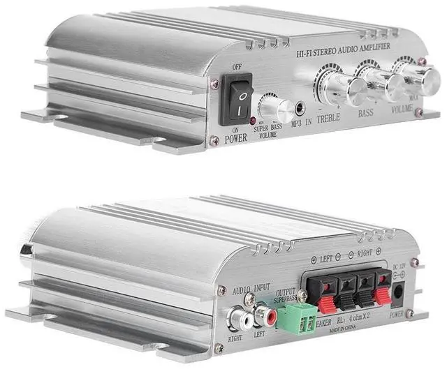automatic polarity protectionthis amplifier is supplied by single direct current main, with automatic polarity to circuitry overheating and overloading, with good channel seperation. ^^ sound effectthis amplifier has the characteristics of low noise, light weight, large power output and good sound quality. using this amplifier, you can get more pure music and get a good experience. ^^ material and ocassion suitablethis amplifier' size easy to install, especially good fit for car, motorcycle, boat, etc. this amplifier is made of aluminum alloy, the product appearance is very cool and fantastic.