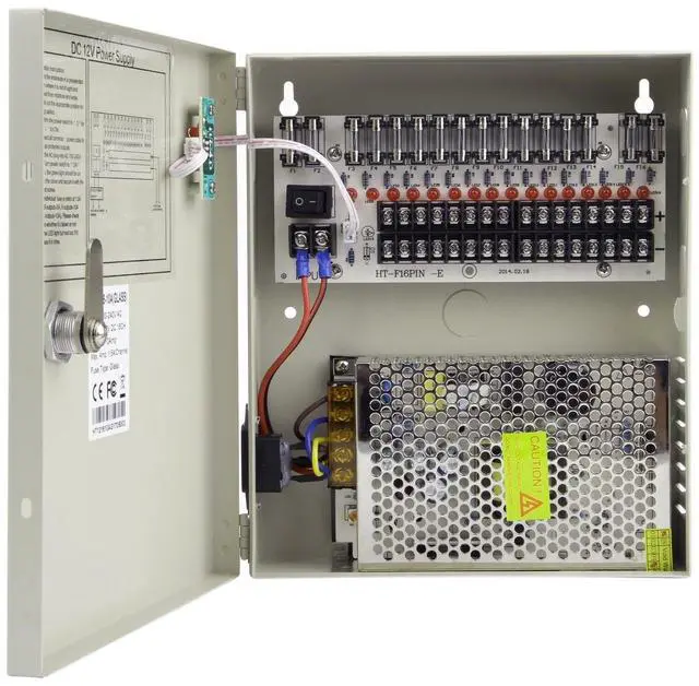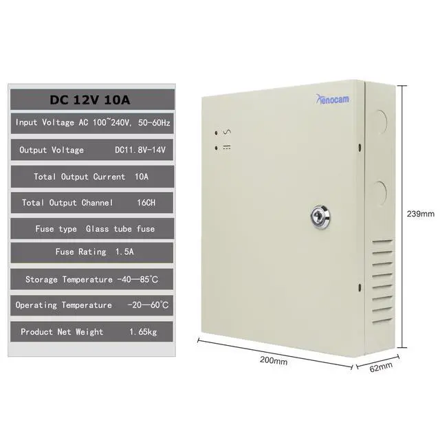 Xenocam 16 Channel Port 12V DC 10 Amp Amper with Glass Fuse Distributed Power Supply Box for CCTV DVR Security System and Camera or IP Cameras