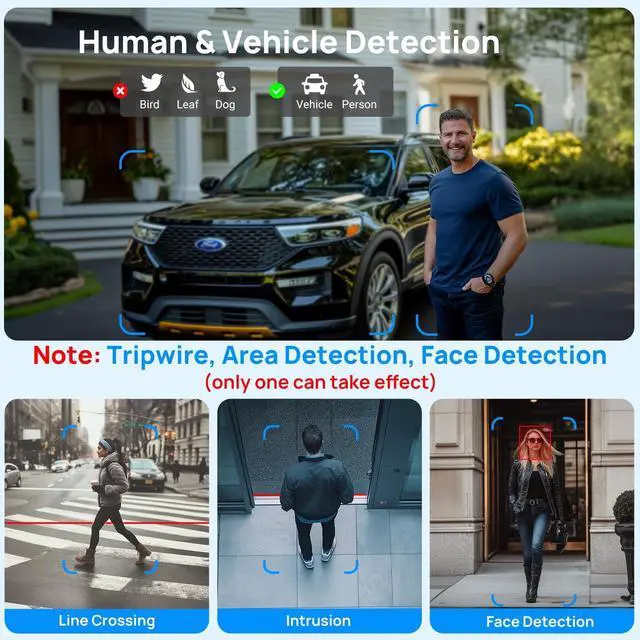 Super F 1.0 Full Color Wide Angle PoE Turret Camera- This 8mp full color poe camera outdoor can be used in extremely dark scenes, with excellent full-color technology and F 1.0 large aperture lens. Ultra HD 8MP (3840 x 2160) 20fps resolution have 1/ 2.8 8 Megapixel Scan CMOS high-performance sensor and 2.8 mm fixed lens provide an ultra-wide viewing angle of 112, and rich-color night vision screens provide you with critical evidences like the color of clothes or a car, even in total darkness. ^^ Smart AI Human/Vehicle Detection & Built in Mic - This full color 8mp ip camera is advanced person/vehicle detection based on cutting-edge detection algorithms helps identify real threats, and when an alarm occurs, the 8mp poe camera captures it in time and sends an alarm message to your phone, the accuracy rate is up to 99%.