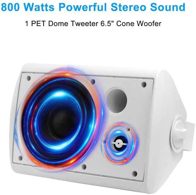 WATT POWER: The high powered 2-way full range indoor outdoor speakers wired waterproof has a maximum power output of 800 watt peak power / 200 watt RMS at 6 ohms so you can play your favorite tracks as loud as you want and with style ^^ Versatile Swivel BracketsWe designed easy install swivel brackets to make sure you are able to place all the outdoor speakers in optimal height. The brackets is speed - lock mounting bracket, offers easy operation, non-slip design, allow up to a 120 degree range of motion while the front facial can rotate up to 90 degrees ^^