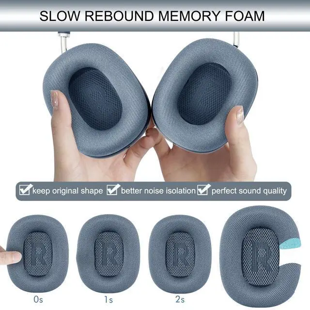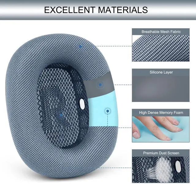 GEVO Upgraded Ear Cushions Replacement Earpads for Apple AirPods Max Headphones, Mesh Fabric Ear Pads Ear Covers Cups with Memory Foam and Magnet for AirPods Max (Light Blue)